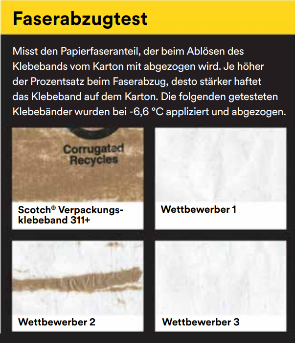 - Haftet auf einer Vielzahl von Oberflächen, einschließlich Wellpappe-Kartons mit einem hohen Gehalt an Recyclingmaterial.