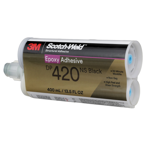3M™ Scotch-Weld™ DP 420 NS ist ein schlagfester 2-Komponenten-Konstruktionsklebstoff auf Epoxidbasis. Das Produkt zeichnet sich durch gute Ermüdungsbeständigkeit aus. Einsatz von DP 420 NS ersetzt mechanische Verbindungen wie Schrauben, Nieten, Punktschweißungen etc.