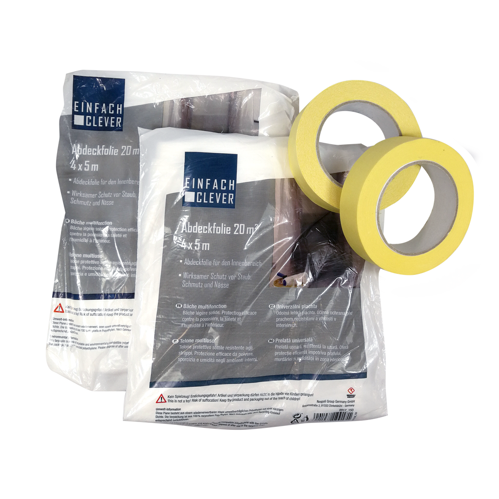 Produktinformationen "Maler-Set "Standard" 2 x Malerkrepp + 2 x Abdeckfolie 4 x 5 m"