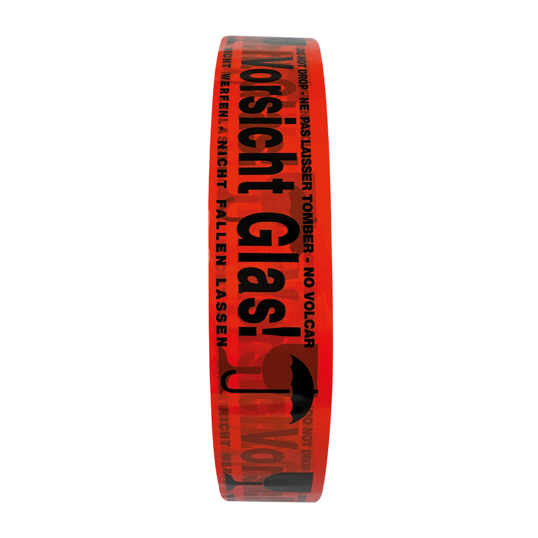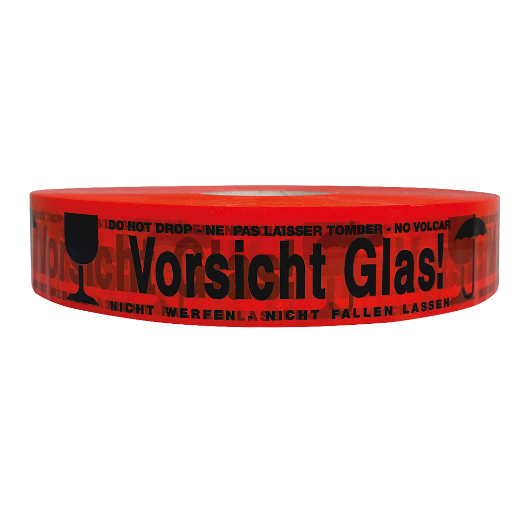 Durch den Paketband Aufdruck „Vorsicht Glas“ in verschiedenen Sprachen ist auch beim internationalen Versand Verständlichkeit garantiert. Der deutlich sichtbare Hinweis sorgt dafür, dass alle Beteiligten im Versand- und Logistikprozess auf den empfindlichen Inhalt des Pakets aufmerksam werden.