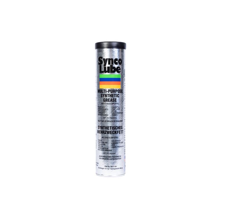 SYNCO LUBE® SYNTHETISCHES MEHRZWECKFETT MIT SYNCOLON® (PTFE) ist ein patentierter synthetischer Hochleistungs- und Mehrzweckschmierstoff. Die synthetischen Basisflüssigkeiten und die Zugabe von SYNCOLON® (PTFE) Mikropartikel bilden ein Premium-Schmiermittel, das einen längeren Lebenszyklus gegen Reibung, Verschleiß, Rost und Korrosion bietet. Der Verschleiß wird erheblich reduziert, Stillstandzeiten bei Maschinen und Anlagen werden minimiert, wodurch die Produktivität gesteigert wird.