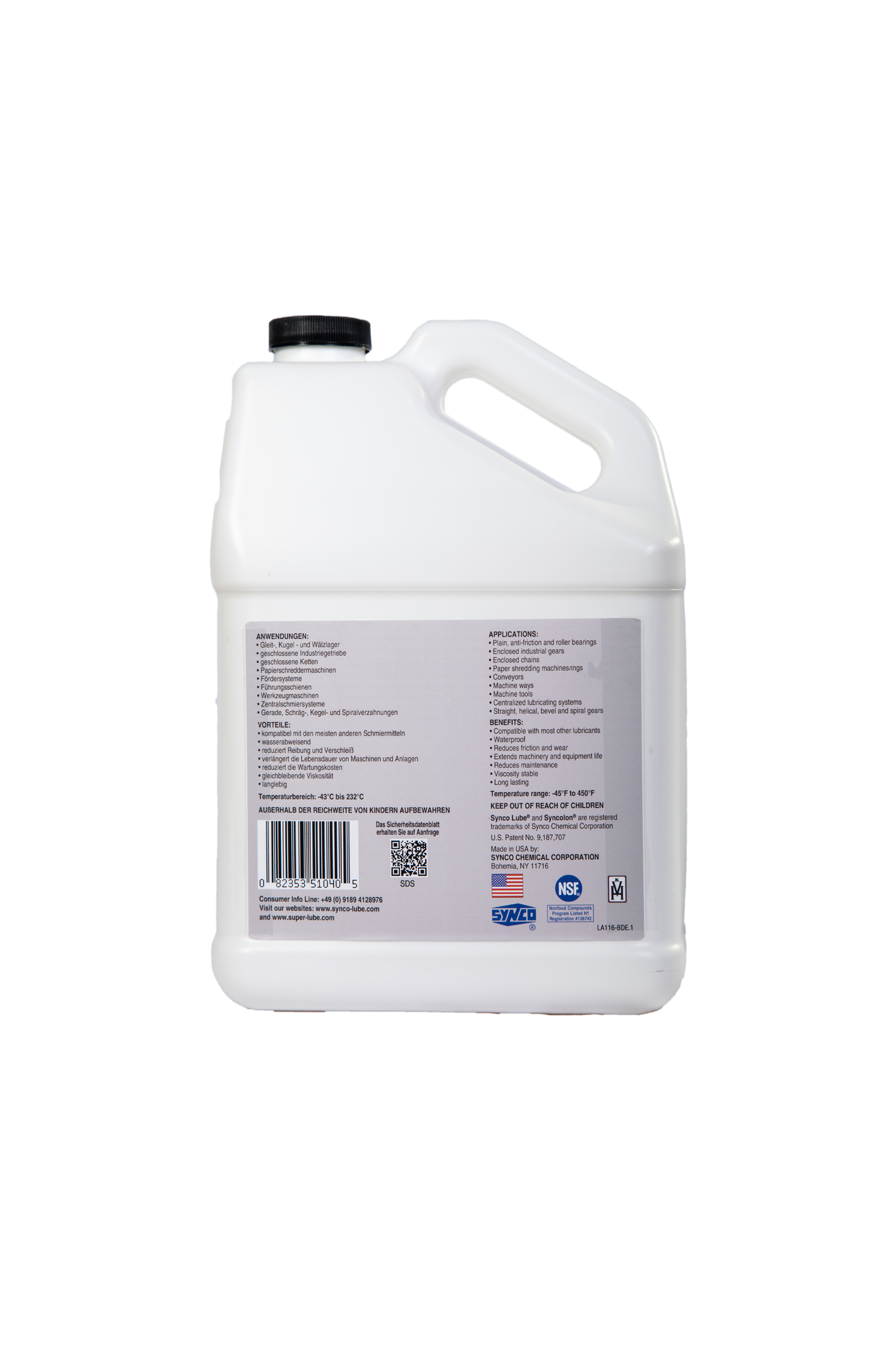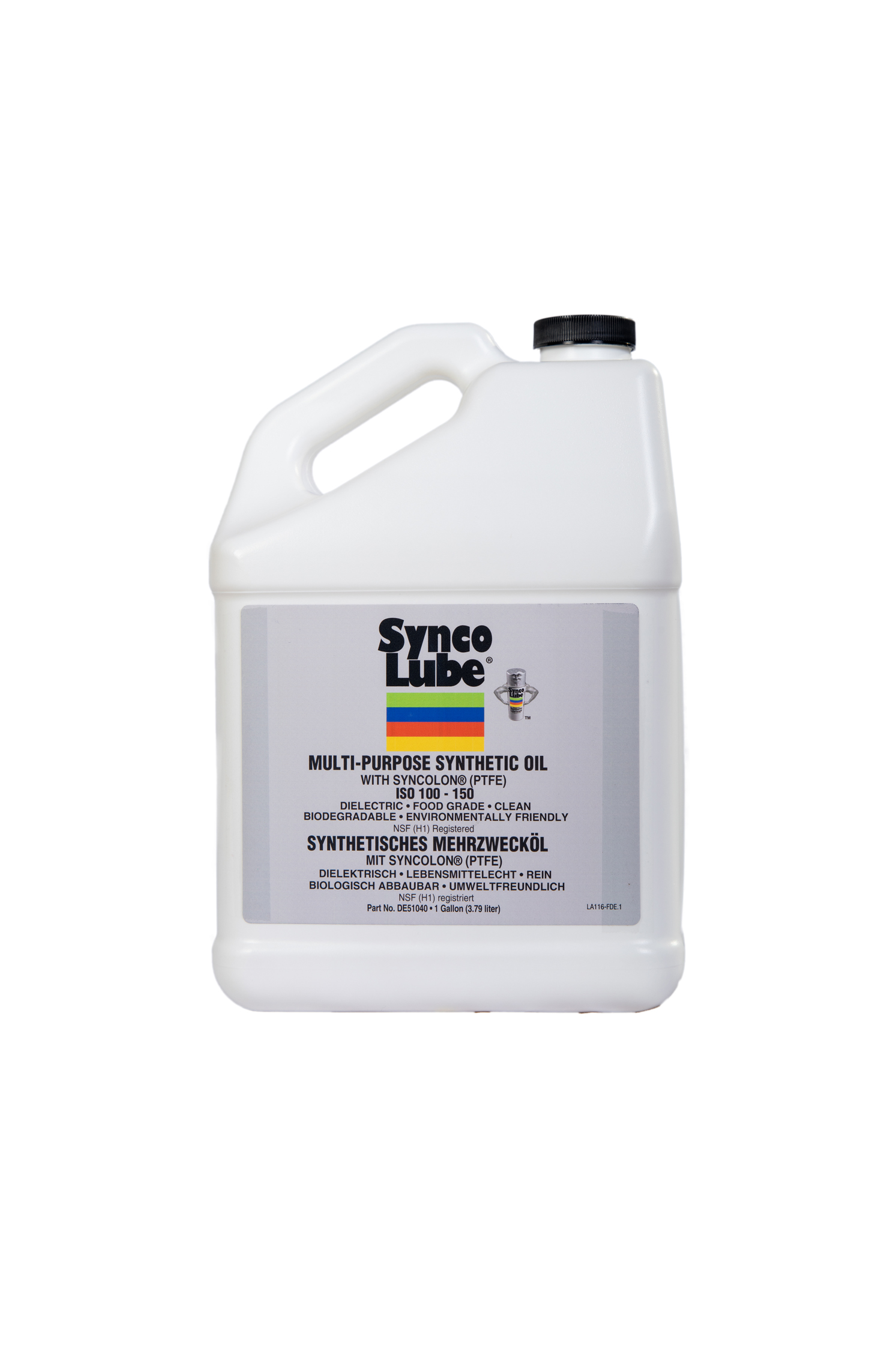 SYNCO LUBE® SYNTHETISCHES MEHRZWECKÖL MIT SYNCOLON® (PTFE) ist ein NSF-registrierter, lebensmitteltauglicher, Schmierstoff mit der Einstufung H1 für zufälligen Kontakt mit Lebensmitteln. Darüber hinaus ist es umweltfreundlich sowie biologisch abbaubar.