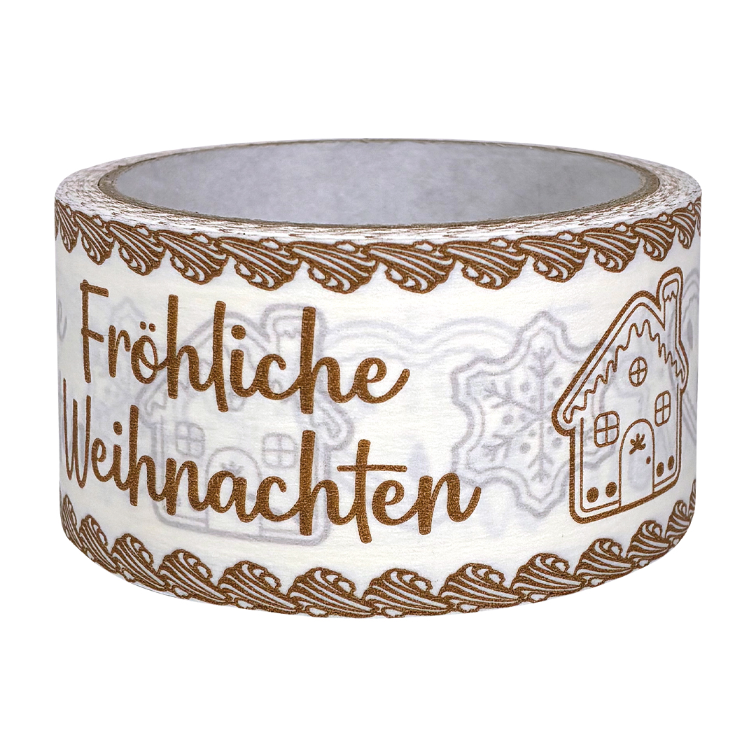 Dieses umweltfreundliche Papier Klebeband "Frohe Weihnachten" aus robustem Papier ist idal für das Weihnachtsfest und Weihanchtsgeschenke.